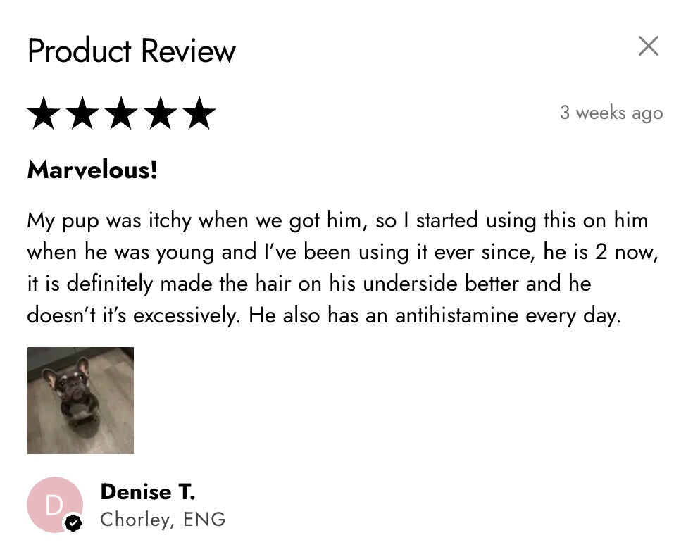 • Dog Stuff offers a gentle, natural way to support itchy or sensitive skin
